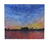 I immediately cut the paper into 6 individual squares and put one in my purse. The next day I did a small watercolor cloud study during my lunch break. I did the same the following day and in a couple of days I had three little studies that I otherwise wouldn’t have done if I wasn’t because of the size of the piece and the materials I took with me.